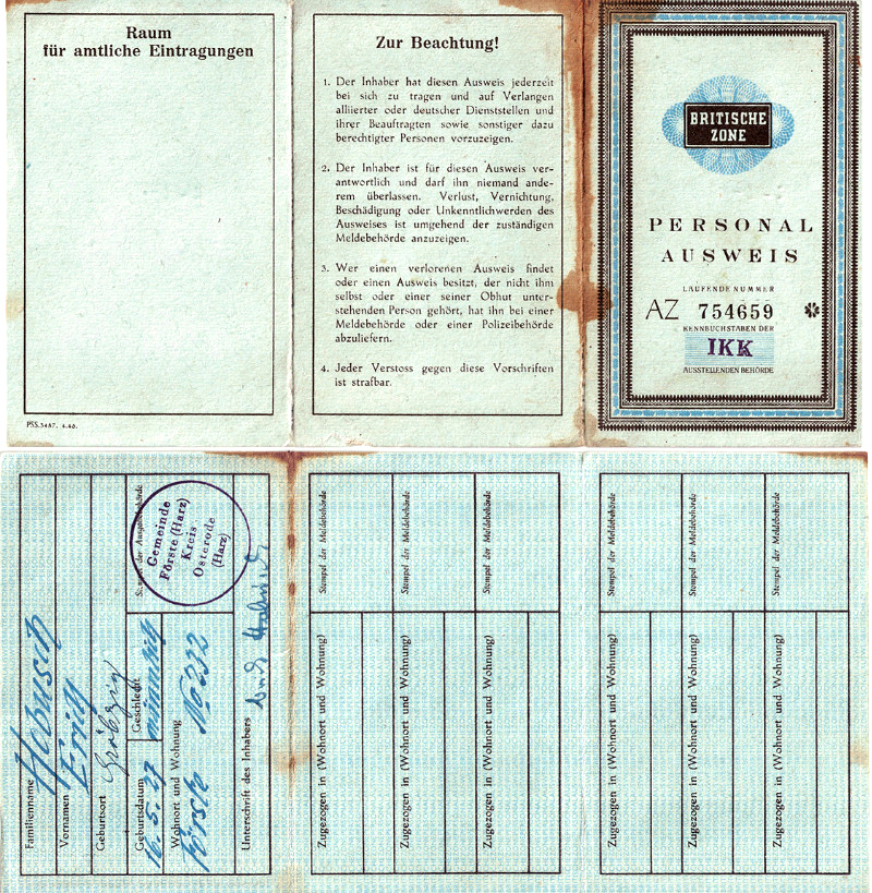 Ein erste (Behelfs-) Ausweis in Hagenow nach seiner Entlassung aus der Kriegsgefangenschaft.