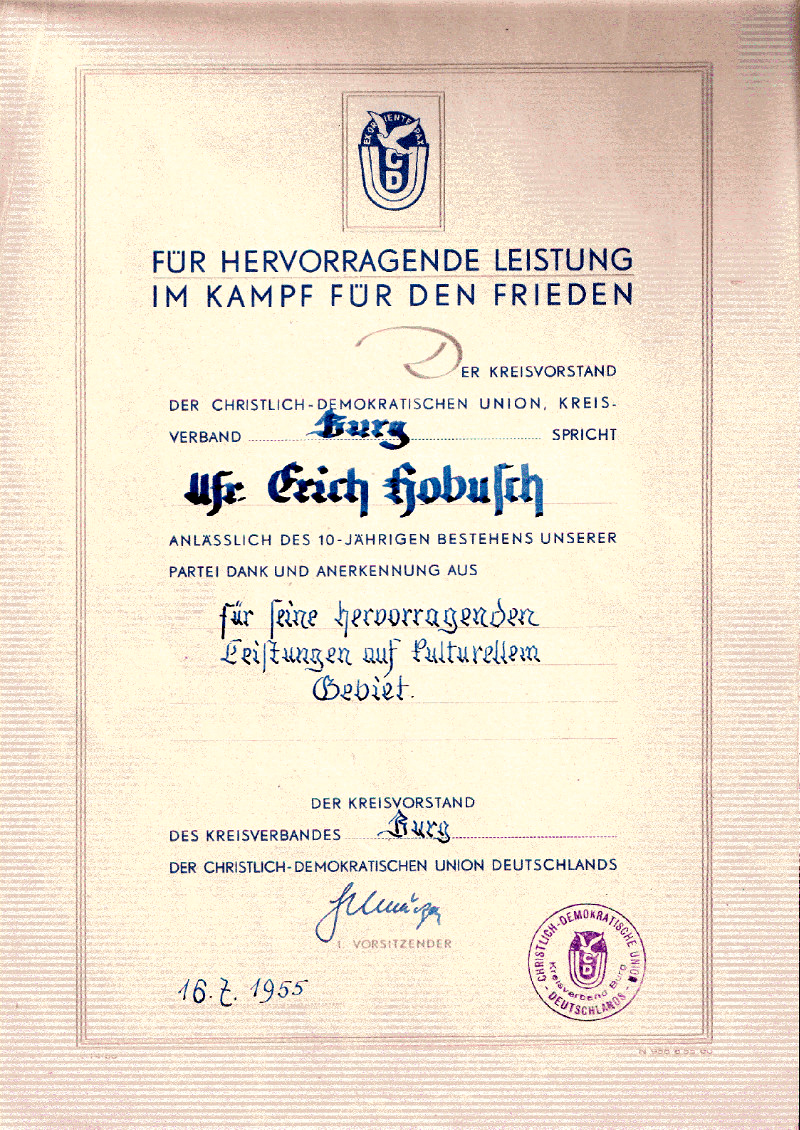 [c1] - 1955: Urkunde: 10 Jahre CDU