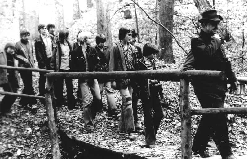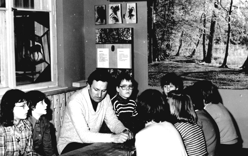 Der Revierförster wandert mit den Teilnehmern der Arbeitsgemeinschaft "Natur- und Umweltschutz" des Pionierpalastes.