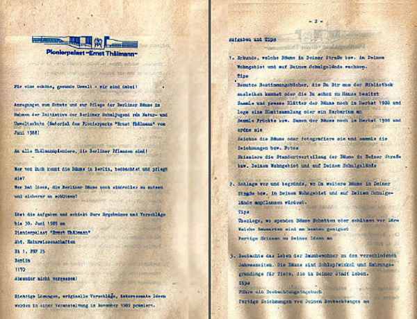Auch der Pionierpalast "Ernst Thälmann" entwickelt gemeinsam mit EH Initiativen zum Baumschutz und zur Baumpflege.