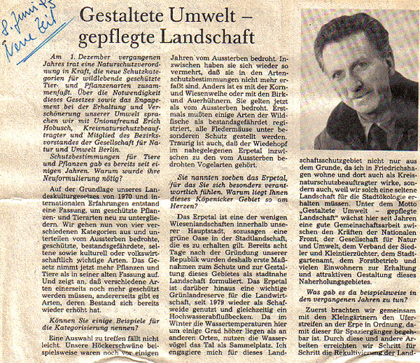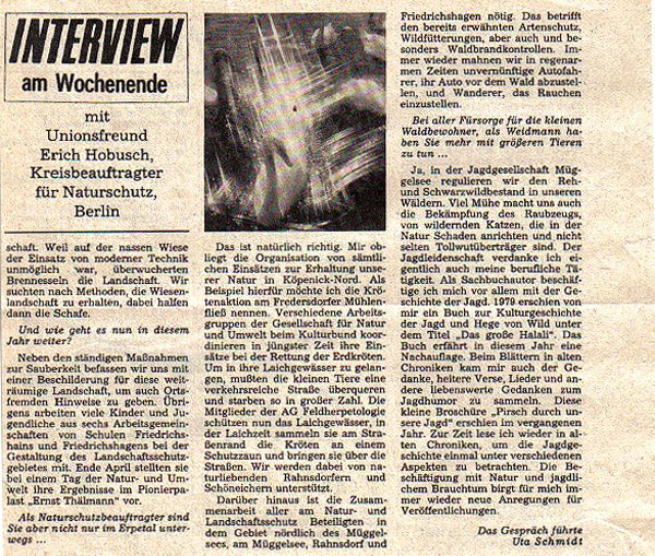 Unionsfreund EH gibt der Zeitung der Ost-CDU "Neue Zeit" ein Interview zur Thematik "Gestaltete Umwelt - gepflegte Landschaft".