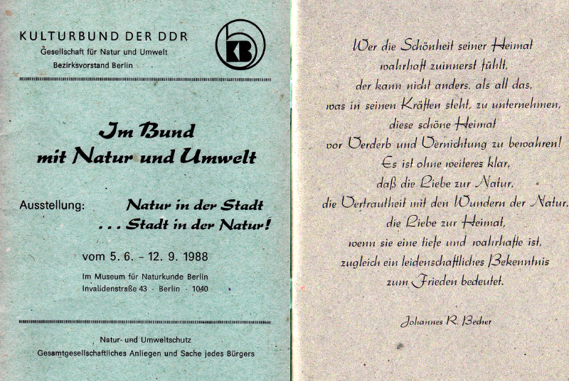 | "Naturschutz-Exkursionen" initiiert durch Die Bezirkskommission "Natur und Umwelt" des Kulturbundes der DDR. |
