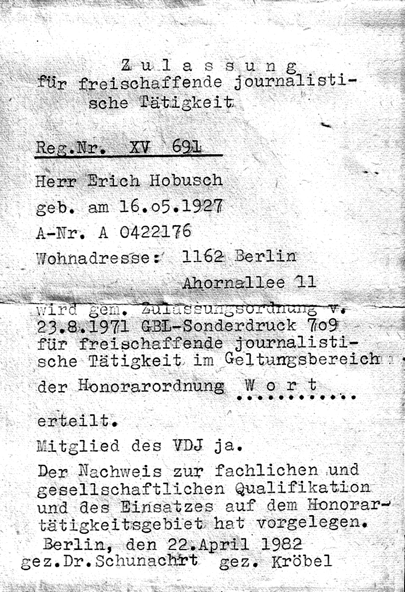 EH wird Mitglied beim Verband der Journalisten der DDR.