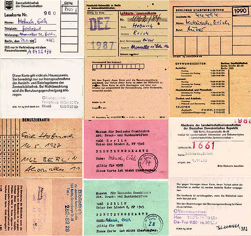 Diverse Bibliotheksausweise belegen eine umfangreiche Recherchetätigkeit.