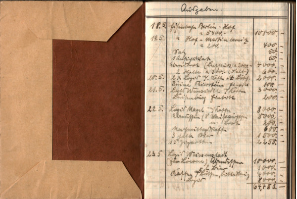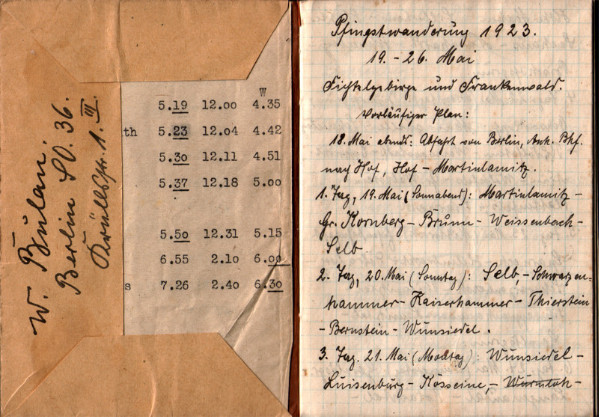 NaturFreund Willi Bulan, seit 1912 Mitglied im AWB “NaturFreunde”, war von 1925-1933 Gau-Obmann des Gaues Brandenburg des TVDN und in der DDR Funktionär des Kulturbundes, führt ein Haushaltsbuch zur Zeit der Inflation, er notiert Ausgaben bis zum 23.5.1923 in Höhe von 64750 Mark.